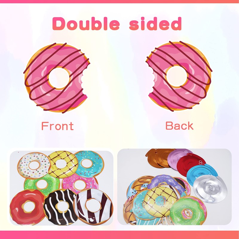 - WELL MADE -- All the hanging banner decorations are made of premium paper cards. The biggest difference between those decorations is our cutouts a printed in double side. A real hanging decor for donut party, fans’ room.