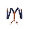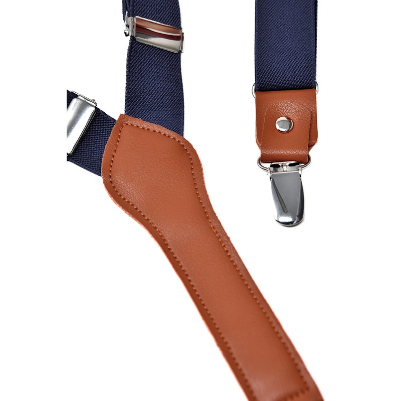 - High-quality blue braces: braces made of leather, cotton and elastane. These suspenders are handmade with the utmost care. Their robust seams and exceptional details guarantee years of quality. This luxurious model with a smart and refined design adapts to all formal or informal styles.