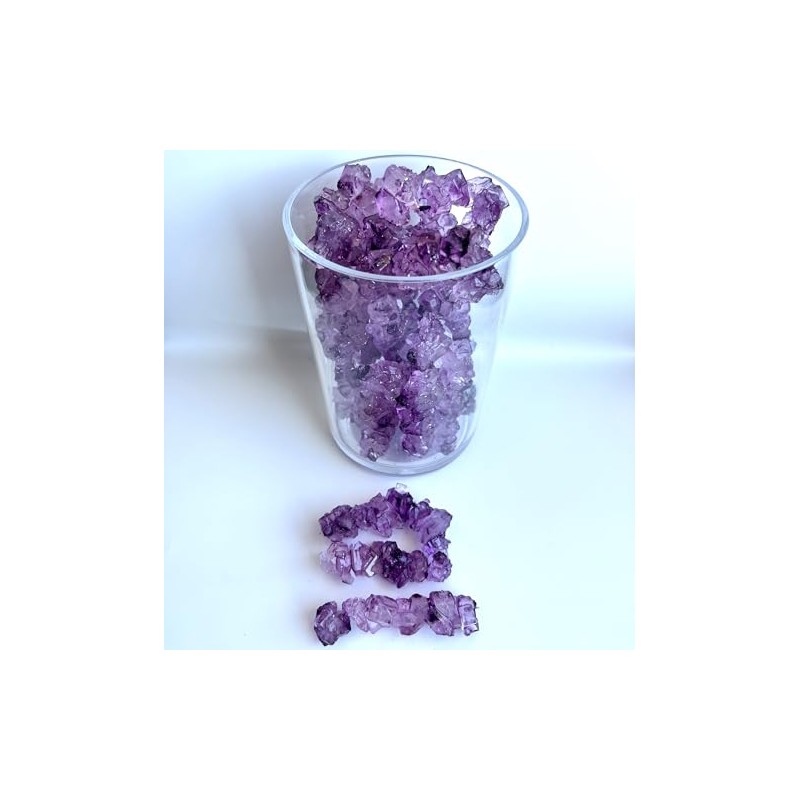 Rock candy is made by a crystallization process as diamond produces in nature, just with different ingredients. This process breaks apart sugar's molecular crystal lattice. After removing all impurities, in a high temperature and a specific time, the process allows producing larger and purer crystal of sugar that is known as classic rock candy crystals.