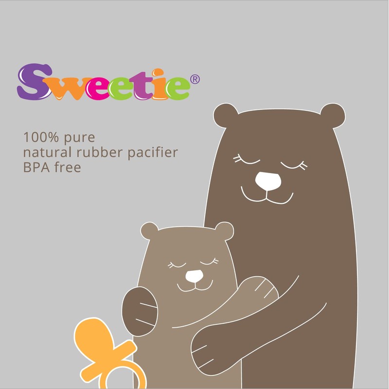 Sweetie 100% pure natural rubber pacifier Soft and natural Round nipple 3 sizes Made from 100% natural rubber, from the tree Hevea tree, natural rubber is softer than silicone and won't leave marks on baby's face. Uniquely hygienic and strong - made of one cast, with no joints or cracks where dirt and bacteria can accumulate. No BPA, nitrosamines, PVC, phthalates, chemical softeners, or artificial coloring. Conforms standard EN1400 Pacifier nipple