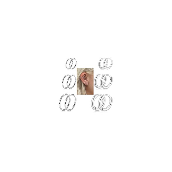- ❤6 Pairs Grate Value Surgical Steel Earrings Sets: 6 Pairs small silver hoop earrings, Hingde hoops design. These silver huggie hoop earrings have classic clip-on closure that fits snuggly and won’t slip off or snag your hair. Giving you plenty of options to choose from according to your ensemble.
