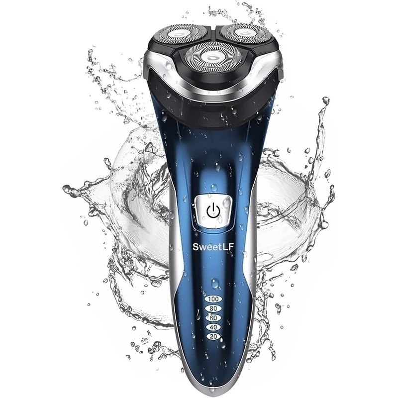 SweetLF SWS7105 Elektrorasierer für Herren, trocken und nass, wiederaufladbar, mit 3D-Drehköpfe, 100 % wasserdicht und 120 min Batterielebensdauer