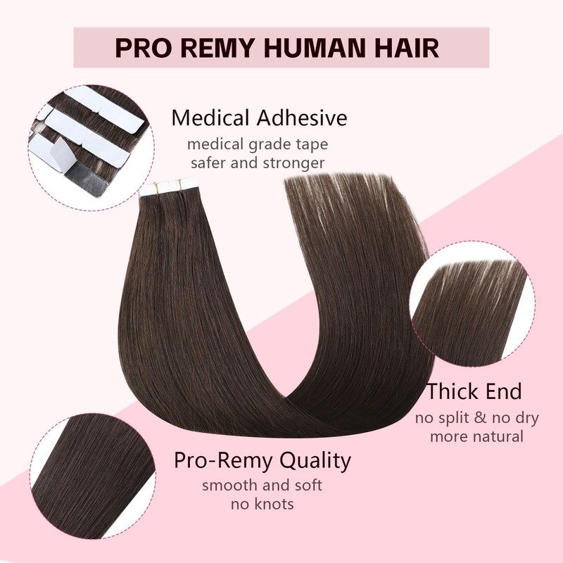 - 【Upgraded Pro Quality Real Human Hair】Sweetmet invisible tape in hair extensions real human hair craft from new upgraded luxury remy human hair. This pro quality hair has greater comfort and longevit, no knots, no dryness, smooth and soft,At least 5 months lifespan with good care.
