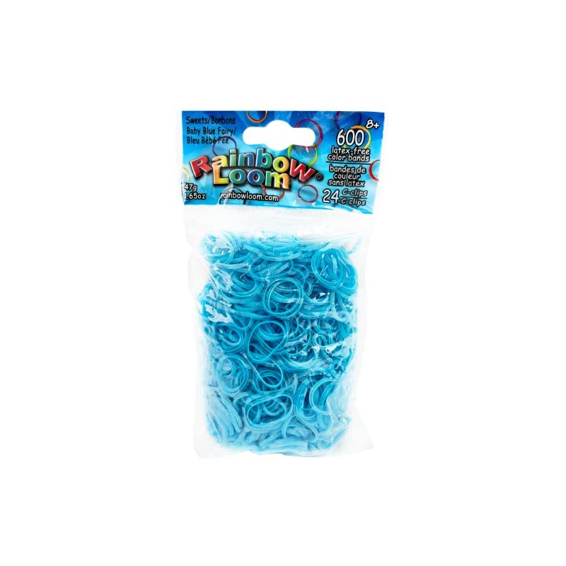 Rainbow Loom-Sweets: Baby Blue Fairy Rubber Bands. Includes 600 Rubber Bands. Includes 25 c-clips. Latex-Free Bands.