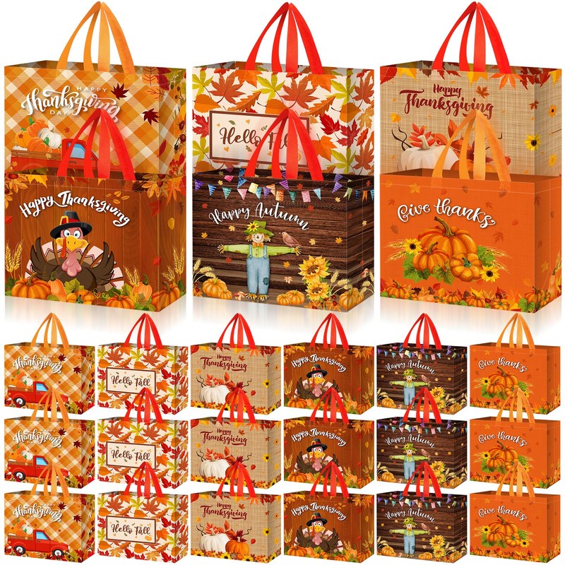 - Value Pack: this set of 24 fall pumpkin bags comes in 6 different Thanksgiving patterns, 4 of each, providing value and convenience for all your holiday preparations; This value pack is good for bulk gifting or party planning, ensuring you have enough gifts for all your guests, and is a practical choice for large gatherings or community events