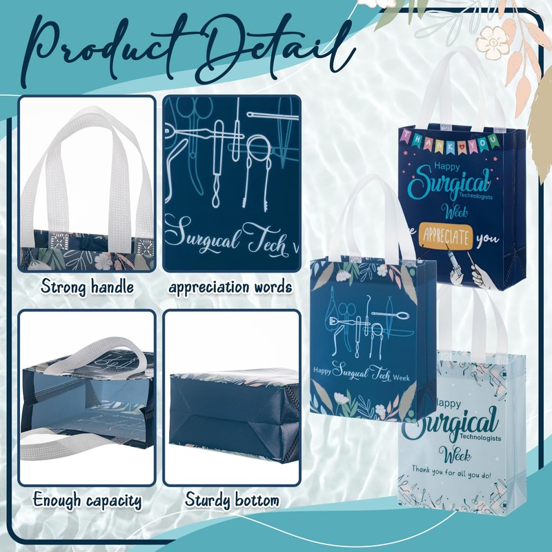 - What You Will Get: you will receive 36 surgical tech gifts bags in 3 unique designs, each with convenient handles; Ideal for expressing gratitude during Surgical Tech Week, staff recognition events, or appreciation parties; A thoughtful and practical way to honor surgical techs