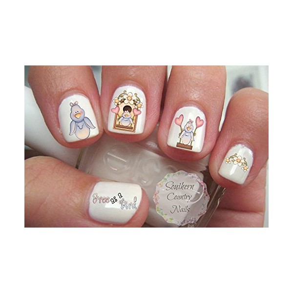 These are water-slide decals, so you just trim them, soak them in water to separate the decal from the backing paper, slide them onto your nail and then position them, then add a clear topcoat. They work best with lighter polish and French manicures. They are not stickers. Original Artwork by Trina Clark, DigiScrapKits
