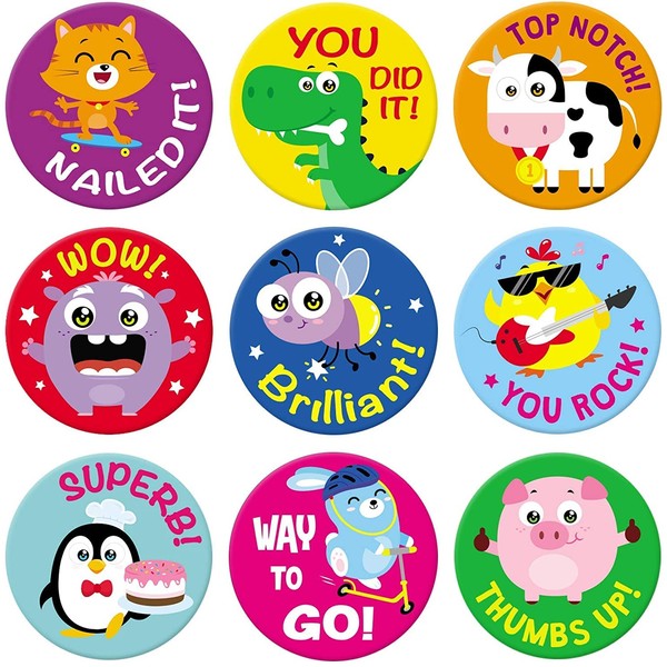 - 9 Cute Funfrenz Designs! Uh oh is that yet ANOTHER sheet of garden variety star stickers for kids or smiley face stickers? Listen, kids work hard for their rewards so we created an entirely bespoke range of 9 assorted stickers – never seen before! From the “Thumbs Up” Pig to the “Superb” Penguin and cool “You Rock” Rock Chick, the kids won’t just want a reward, they’ll want to choose it themselves!
