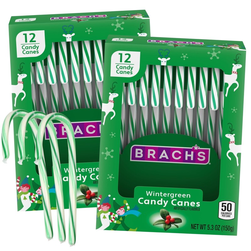 Sweetzo Wintergreen Christmas Candy Canes, Individually Wrapped Classic Holiday Treats, Stocking Stuffer Gifts, 12 Count, 5.3 Ounces (Pack of 2)