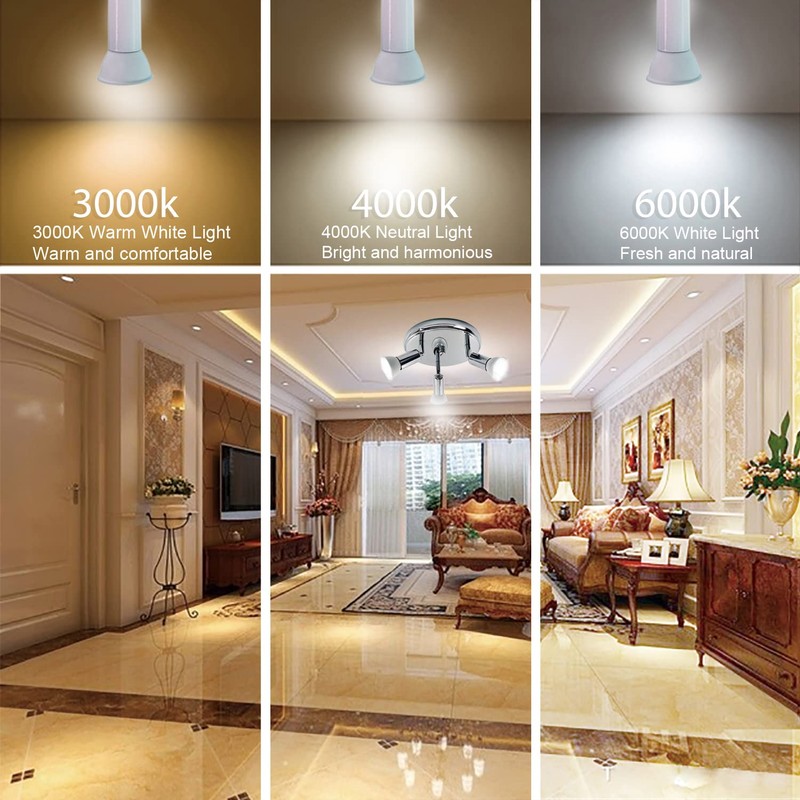 - 【Modern Design】This ceiling light has three GU10 arms that can be adjusted 180° vertically and swiveled 350° horizontally, and can be fitted with pre-equipped GU10 bulbs to direct light at your preferred angle in the living room.