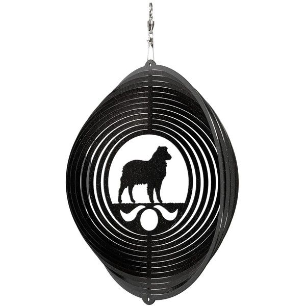 SWEN Products Australian Shepherd Circle Swirly Metal Wind Spinner