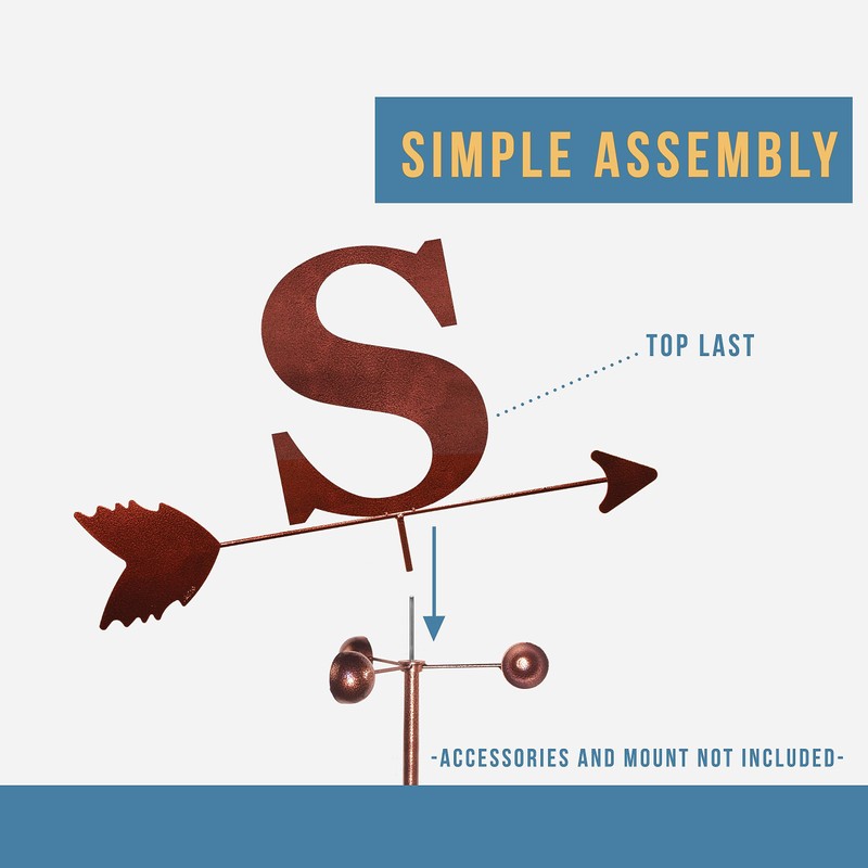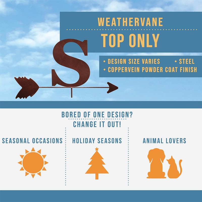 SWEN Products Monogram Letter Weathervane Interchangeable Top Arrow Only