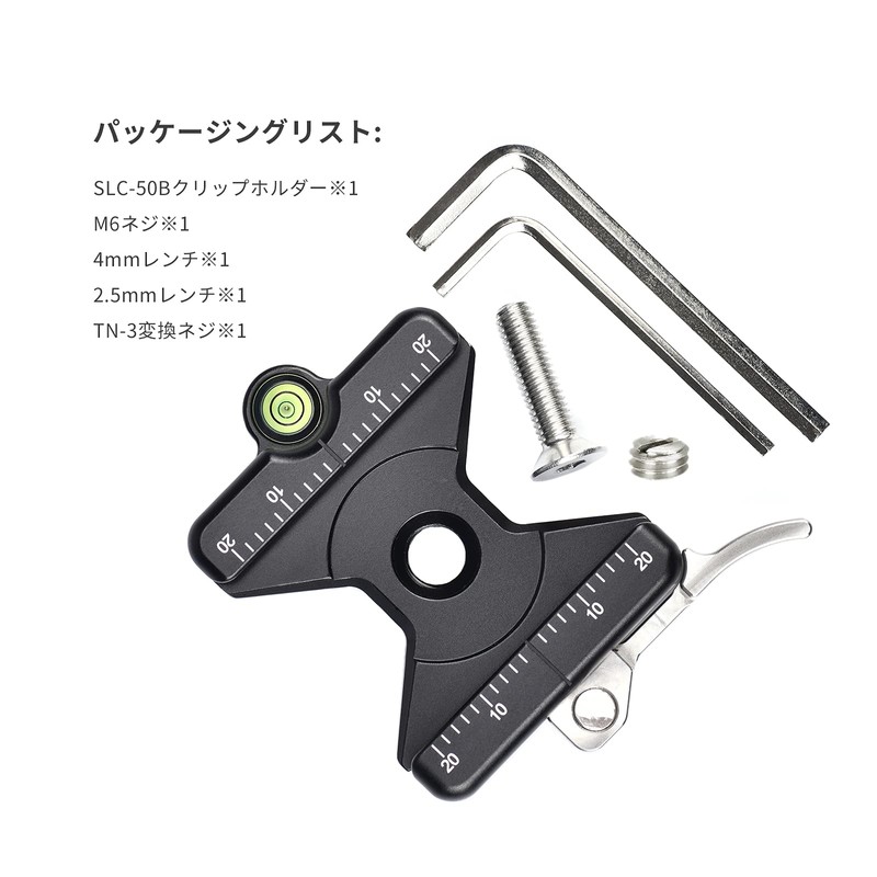 - Package List: SLC-50B clip holder *1, M6 screw *1, 4mm wrench *1, 2.5mm wrench *1, TN-3 conversion screw *1, R04 pile back *1