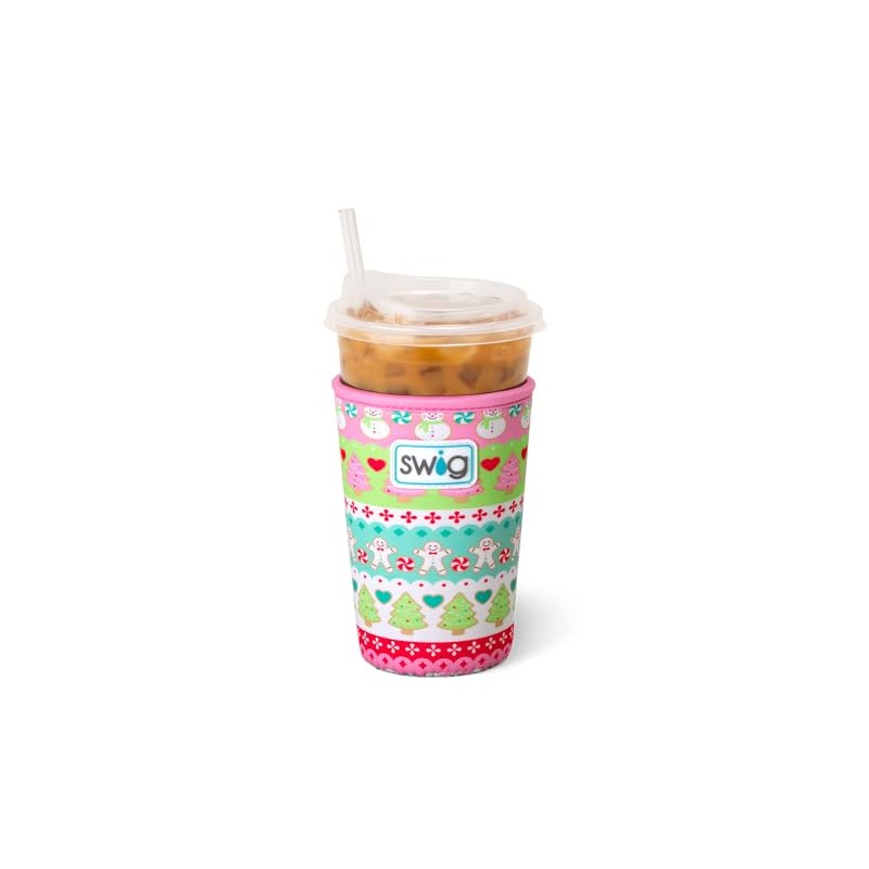 Swig Life Iced Cup Coolie, Standard 22oz Iced Coffee Cup Insulator Sleeve with Handle, Neoprene Insulated Coolie Keeps Drinks Cold (Cookie Jar)