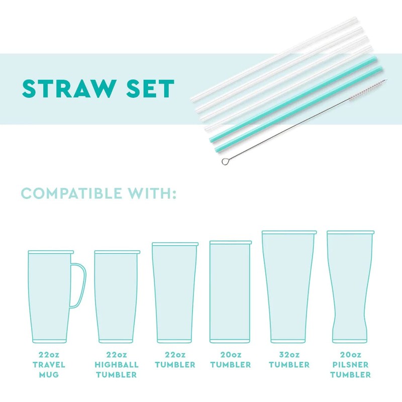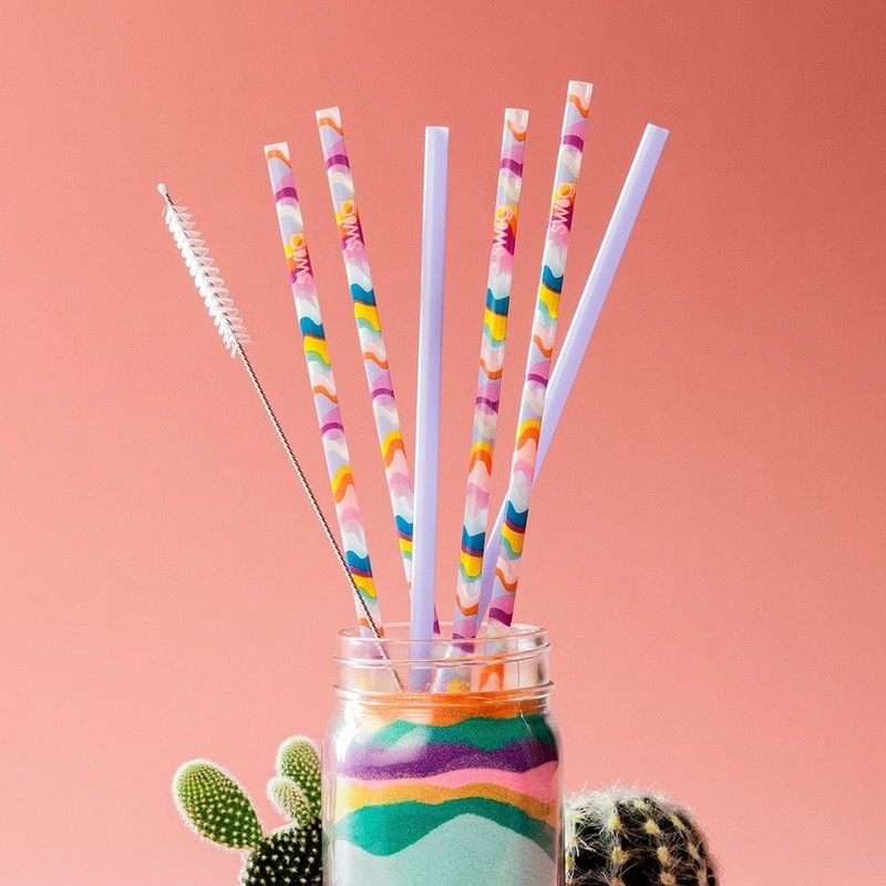 - 4 printed straws, 2 solid color straws, and 1 straw cleaning brush