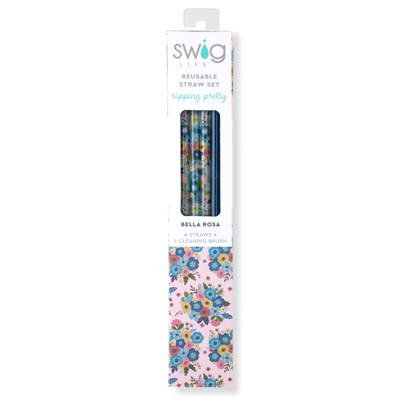 Swig Life Reusable Straws Bella Rosa + Navy Glitter Tall Straw Set & Cleaning Brush, Each Straw is 10.25 inch Long (Fits Swig Life 20oz Tumblers, 22oz, and 32oz Tumblers)