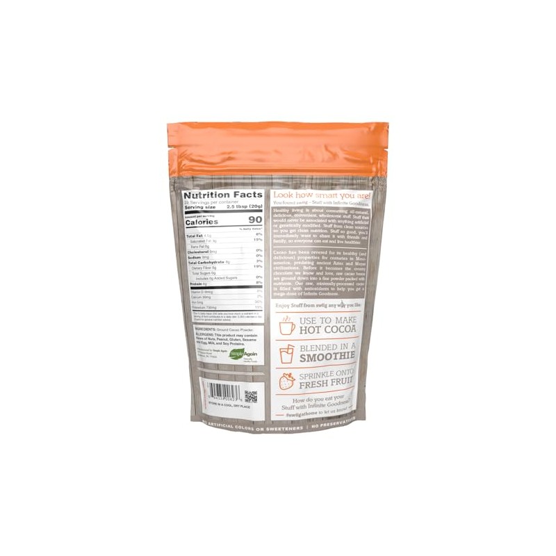 swiig Ground Cacao, No Added Sugar or Oils, Gluten Free, No GMO Ingredients, 1.5 Pound Bag
