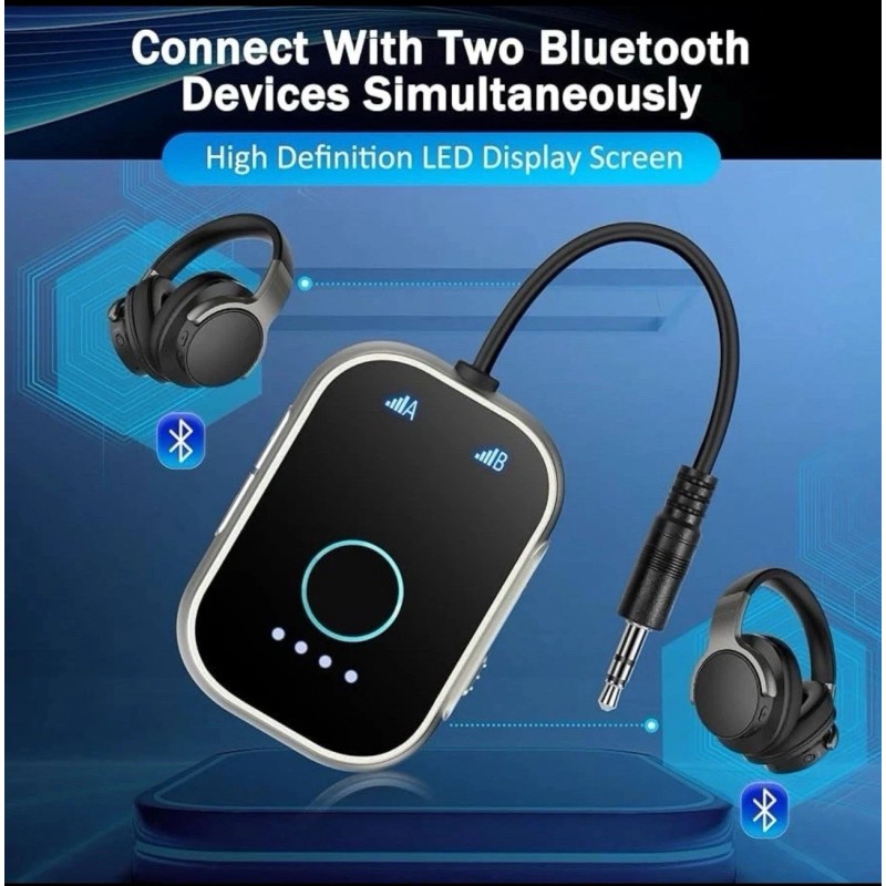 Bluetooth Transmitter Receiver for TV, 2-in-1 Bluetooth 5.3 Adapter for Airplane, Gym Equipment, Cars, for up to Two Wireless Headphones, Cell Phones.