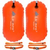 - 🏄 Cool Appearance: Brightly-colored swim buoy is exceptionally noticeable in lakes,oceans,and other open water,making the swimmer more visible to lifeguards,boaters,surfers,jet skis,kayaks,canoes,and other open water vehicles;Eye-catching color also can keep dangerous sea animals away,providing a safe way to float and rest while swimming