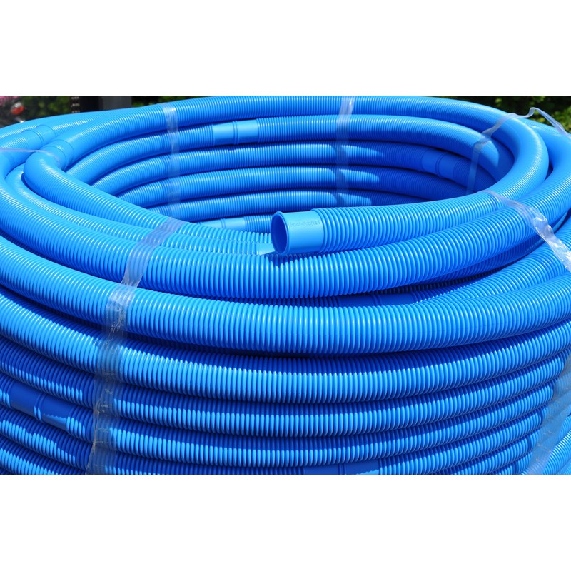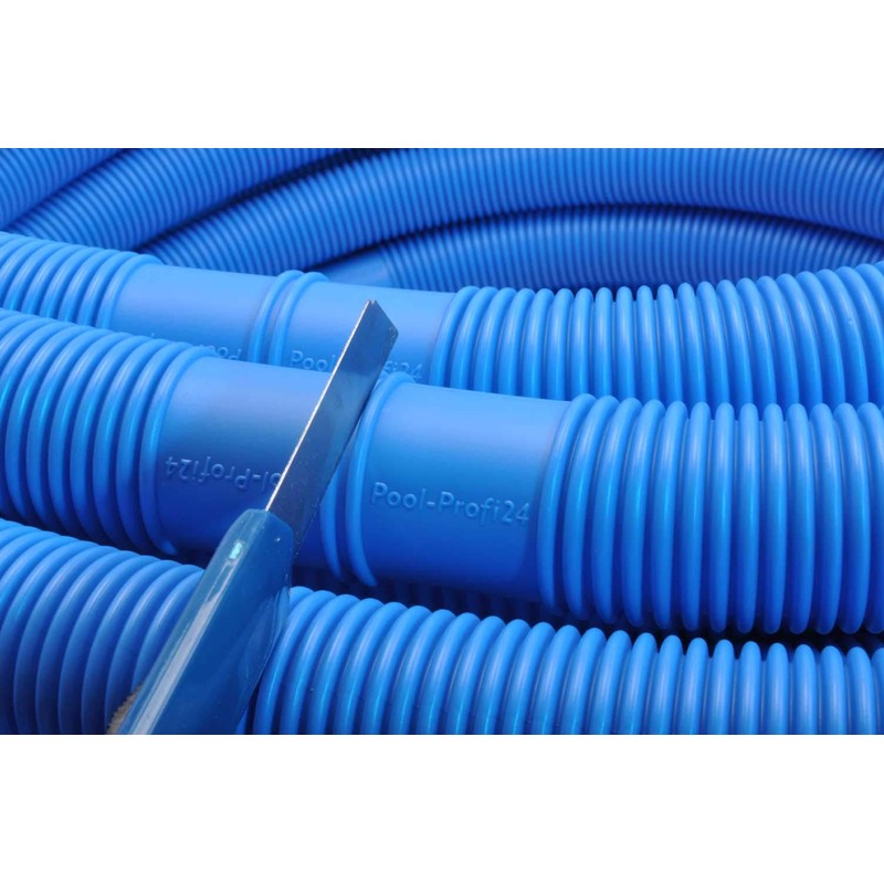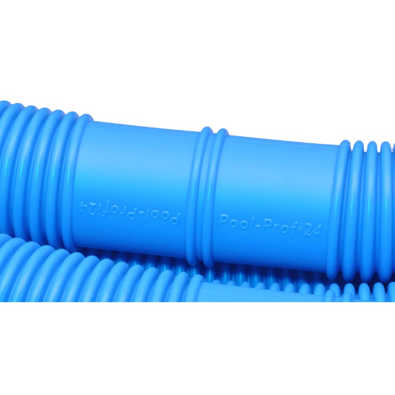 Blue hose for pools. Original quality is delivered only Pool-Profi24. We (Pool-Profi24) produce the hose ourselves. Suitable for all connections (suction, small pumps, filter, ...)UV-stable, chlorine-resistant, nominal size: 38 mm, separable every 150 cm. Order example: quantity 1 = 150 m, quantity 2 = 3.00 m, quantity 3 = 4.50 m, etc. The hose comes in a single piece, up to a maximum length of 100.5 m.