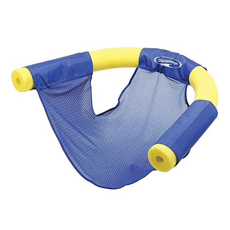 Create your own personal floating chair with the Swimways noodle sling. All it needs is a pool noodle (not included). Simply thread the noodle (not included) into the fabric holes around the back of the sling to create the perfect floating set. Relax on the soft, soothing mesh and enjoy the comfort of the fabric covered sleeve. No inflation needed! Great for everyday pool time and for pool parties. It's a fun and affordable way to provide pool floats for the whole group. Use a skinny noodle for kids and a wider noodle for adults. Recommended for noodles no larger than 3.3" in diameter when measured from the outer ring. Color and styles may vary. For kids ages 5 and older.