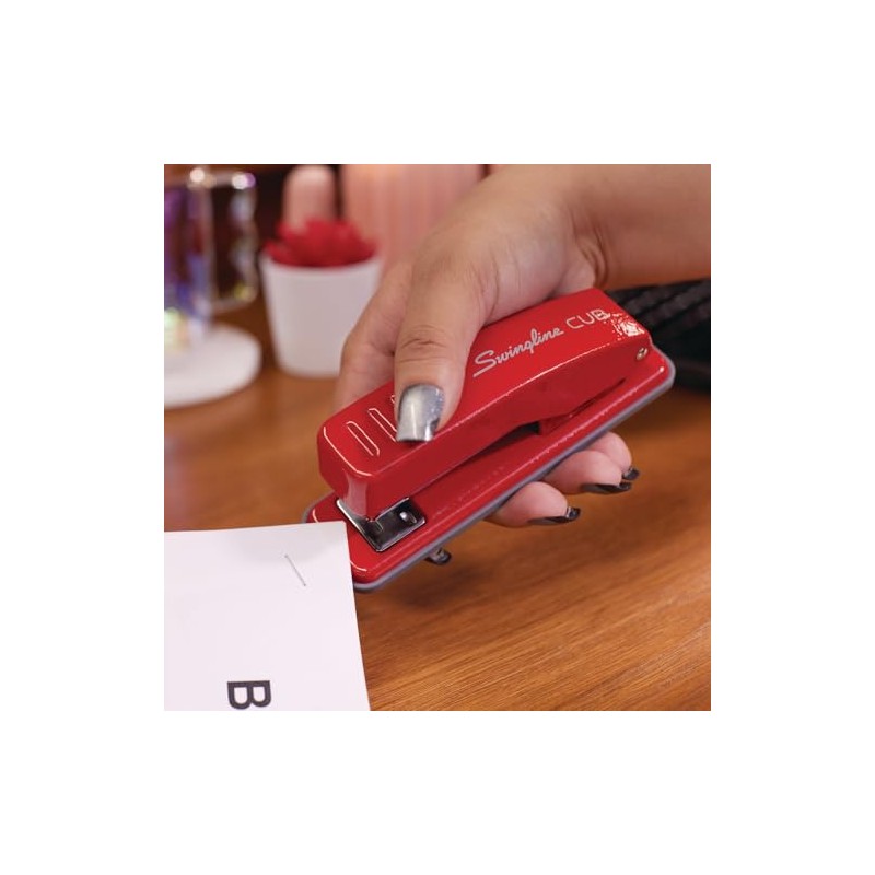 Say hello to the modern-day workspace hero. The Swingline Cub Compact Stapler is small but mighty, and easily takes on your everyday stapling jobs. This compact, metal stapler is perfect for home offices, cubicles and anywhere you work. It holds a half-strip of staples and staples up to 20 sheets at once. This stapler opens for tacking and has a low staple indicator to let you know when it's time to add more staples. Plus, the stapler is Jam Free guaranteed when used with Swingline S.F. 3 Premium Staples and comes with a limited lifetime warranty. Available in Rio Red.