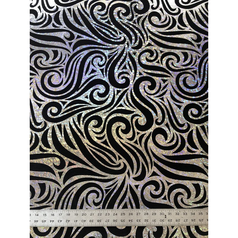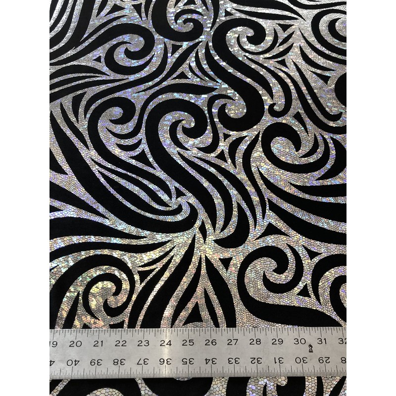 Swirl Hologram Snake Design Foil on Polyester Spandex Velvet Fabric by The Yard or Bolt (Black/Silver)