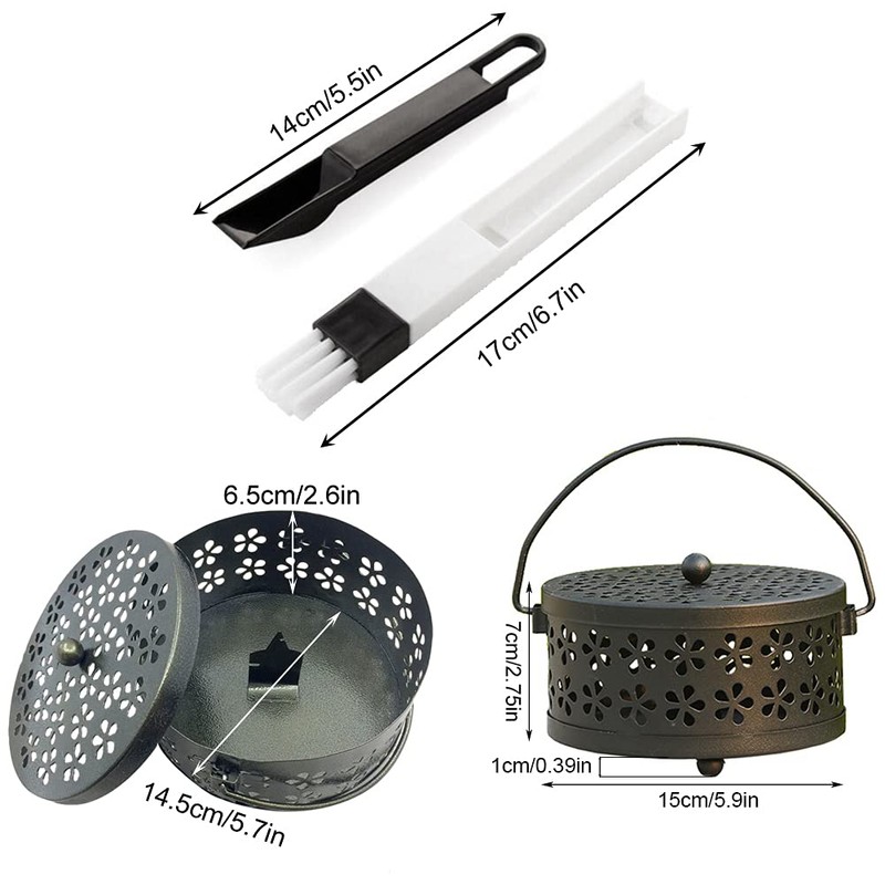 - Easy to Clean The cleaning brush helps you clean the mosquito coil holder easily, and then use the small scoop to remove dirt.