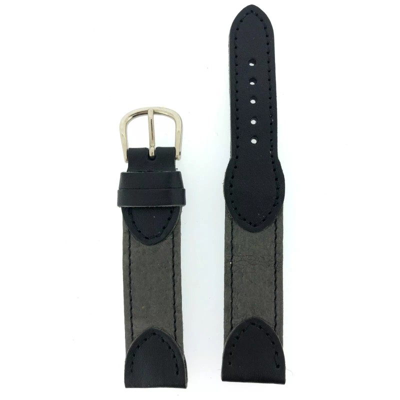 - Watch Band Genuine Leather Grey with Black Accents and Black Stitching