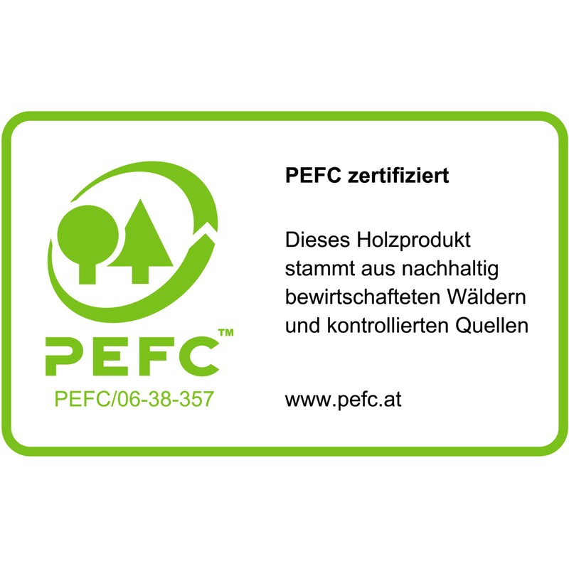 - [100% certified pine wood] - from "sustainable forest management" - confirmed annually by Holzforschung Austria and awarded the PEFC certification. Experience the air-dried quality and purity of certified pine wood from our region.