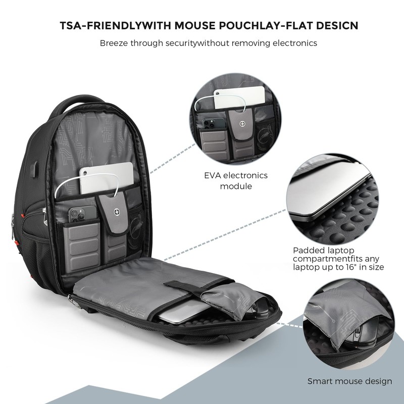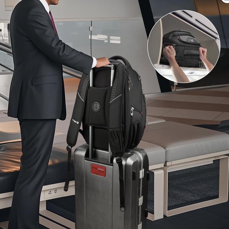 Swissdigital Design Men's Laptop Backpack for Man,Large Capacity Business Travel Backpack Black/Grey