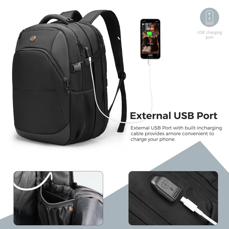 - INTEGRATED USB CHARGING PORT: Laptop backpack with USB charging port, offering quick access to charge your electronic devices such as smartphones, tablets, kindles and all other USB devices on the go while using them at the same time. A powerbank is not included. A special powerbank is not required.