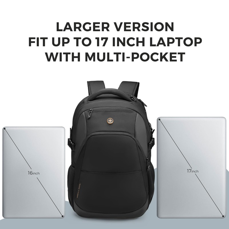 - COLLEGE BACKPACK WITH LOTS OF STORAGE SPACE: A separate laptop compartment holds a 17-inch laptop. A spacious organizer compartment for everyday essentials and tech-electronic accessories. The front compartment of this men's backpack features multiple pockets and pen pockets to keep your belongings organized and easy to find.
