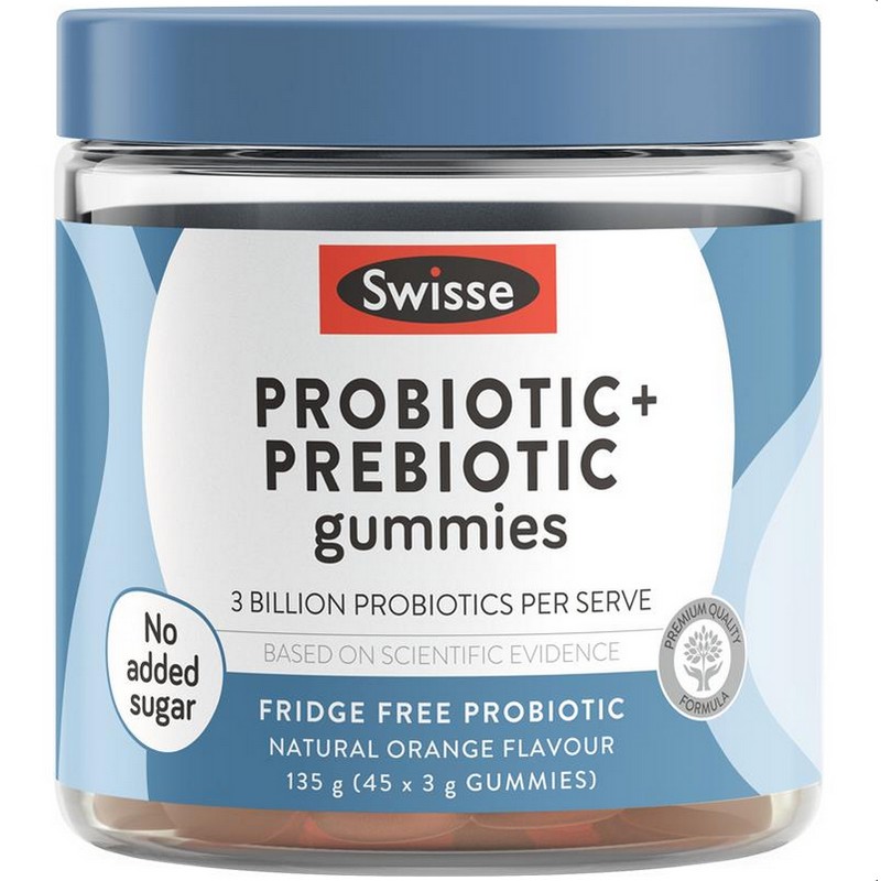Support your gut flora health with Swisse Probiotic + Prebiotic Gummies. These delicious gummies contain 3 billion good bacteria per serve, with no added sugar or artificial sweeteners.