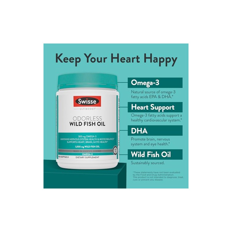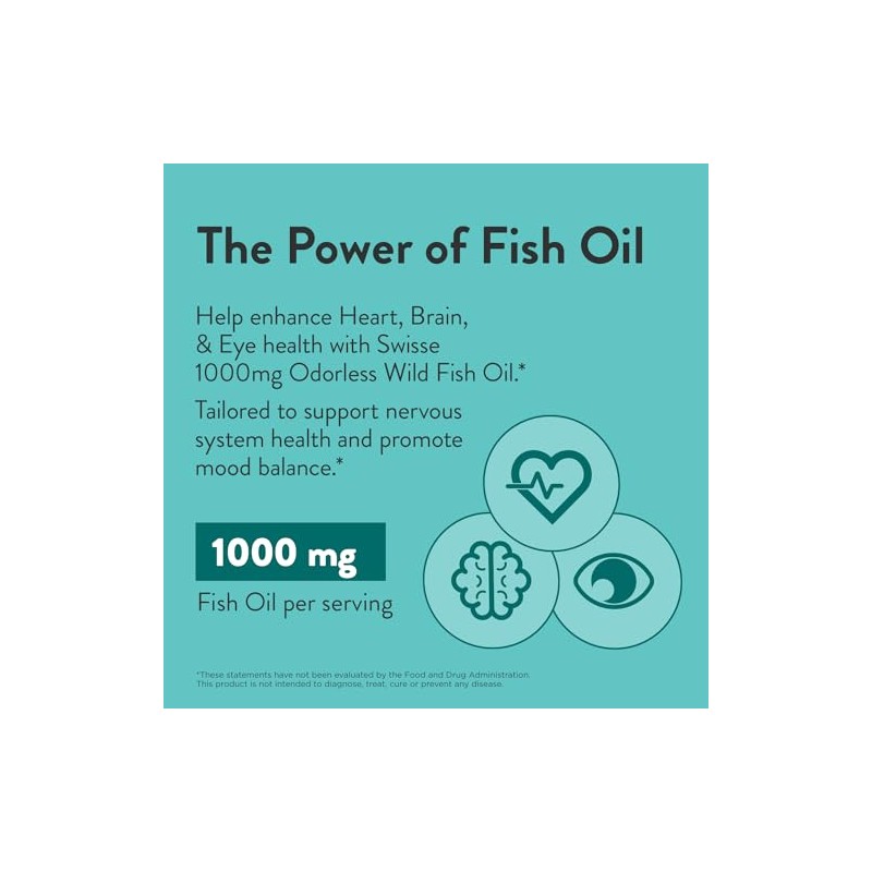 - Presentamos Swisse Odorless Wild Fish Oil 1000mg, un suplemento premium diseñado para el bienestar integral. Obtenido de manera sustentable de poblaciones de peces silvestres y probado rigurosamente de acuerdo con estándares internacionales para el contenido de metales pesados, incluidos mercurio y plomo, garantiza pureza y seguridad. Repleta de potentes ácidos grasos Omega