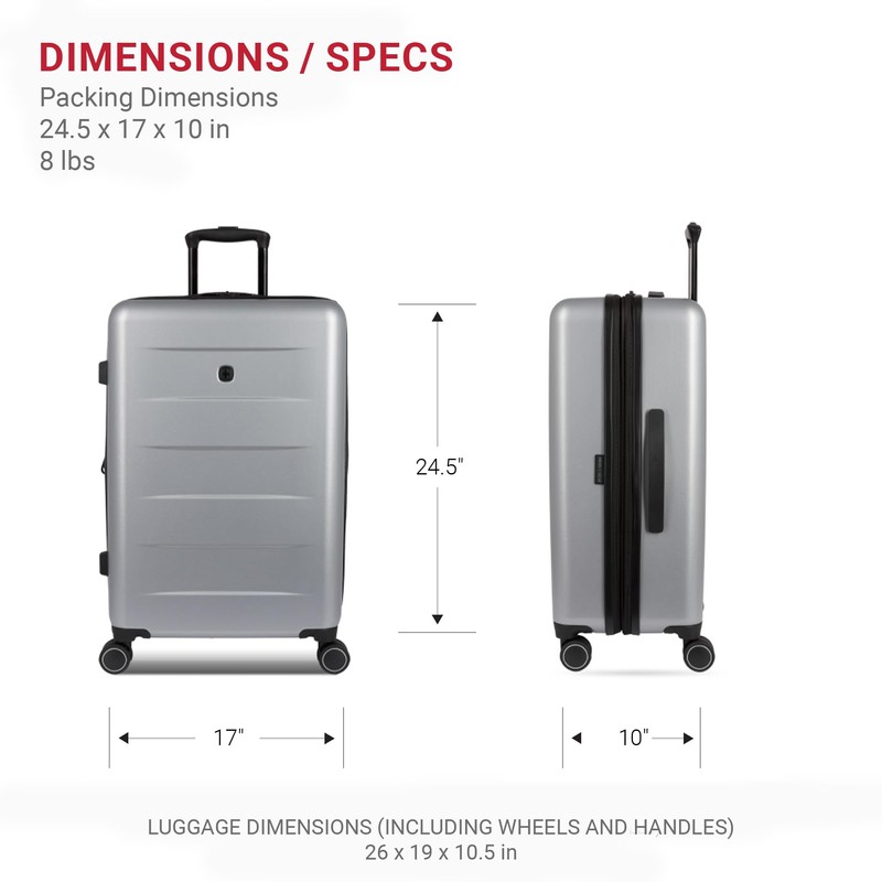 • Expandable Checked Luggage: With 24.5 x 17 x 10 inches of packing space, this rolling suitcase is the perfect size for any trip; At only 26 x 19 x 10.5 inches overall, it fits all your travel essentials without unnecessary bulk
