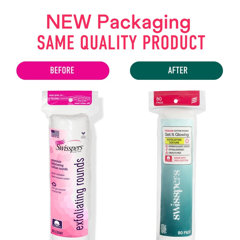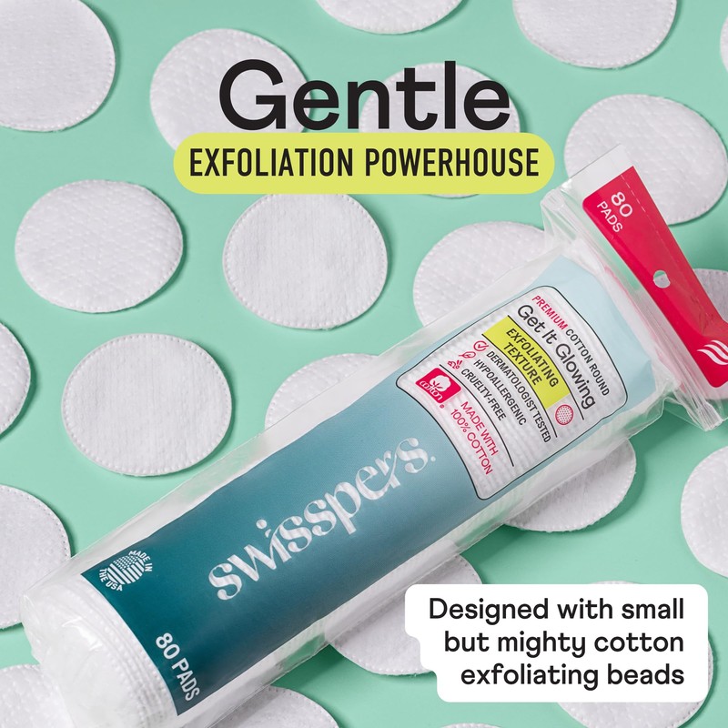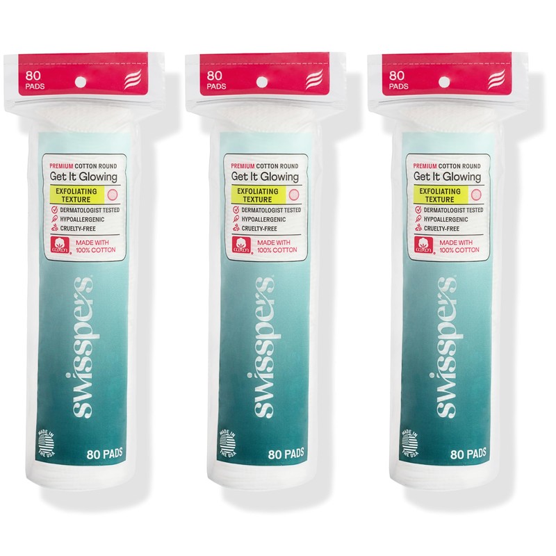 Swisspers Premium Exfoliating Cotton Rounds – 80 Count (Pack of 3) – 100% Pure Cotton, Dual-Sided Surface Pads for Gentle Exfoliation, Optimal Cleansing and Makeup Removal