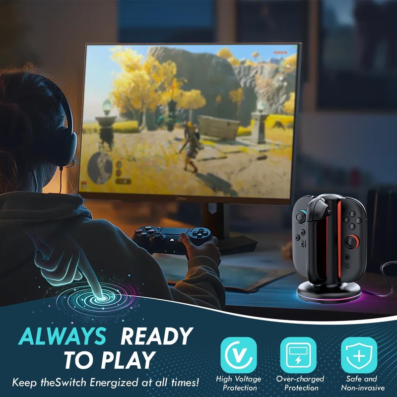 - 【Intelligent Safety Features for Worry - Free Charging】 Equipped with state - of - the - art smart chip technology, this switch 2 joycon charging dock offers enhanced safety features. The intelligent system automatically detects when your Joy - Cons are fully charged and stops the charging process, effectively preventing overcharging and overheating. This ensures the longevity of both your Switch 2 accessories and the charger itself, providing you with a safe and reliable charging solution for years to come.