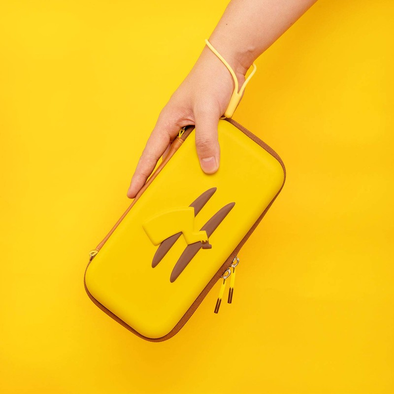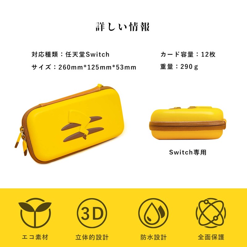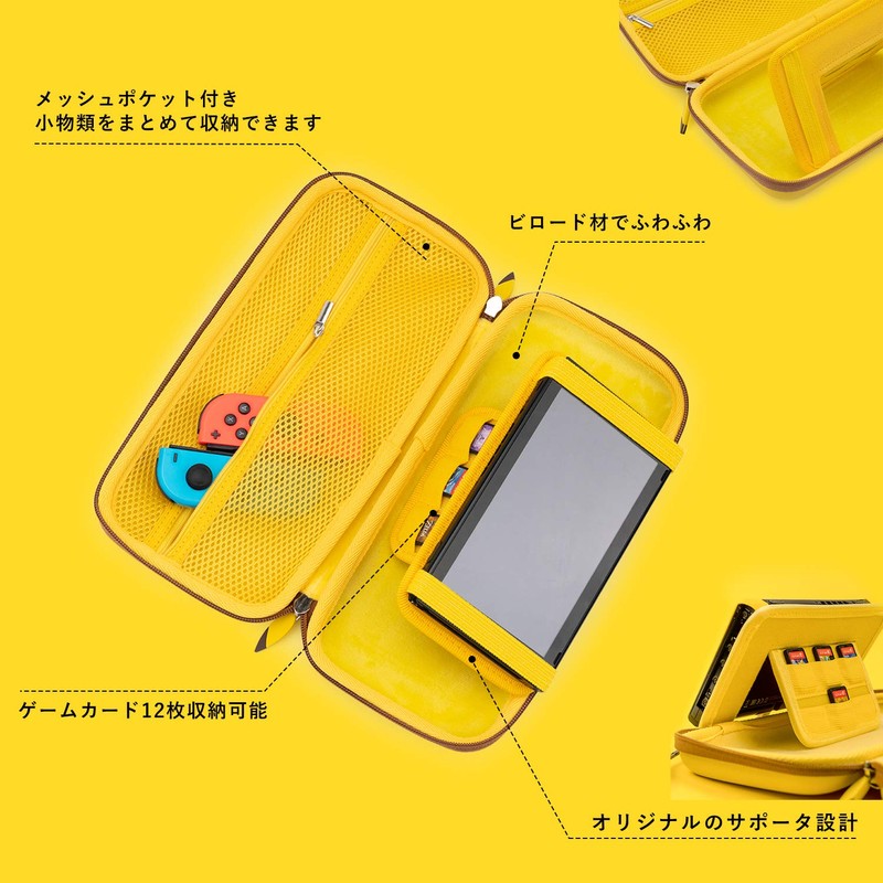 Switch ケース スイッチ ハンドポーチ NS ハードケース 収納バッグ スタンド機能付き 耐衝撃 軽量キャリングケース 防水 防湿設計 小物収納可 ゲーム カード12枚収納 ジョイコン 全面保護 (イエロー)