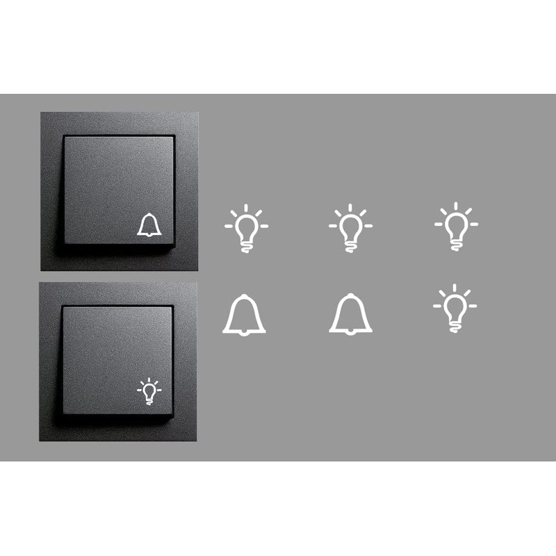 - Switch sticker set with 4 lights and 2 bell symbols. Suitable for all dark switches. Simply stick on