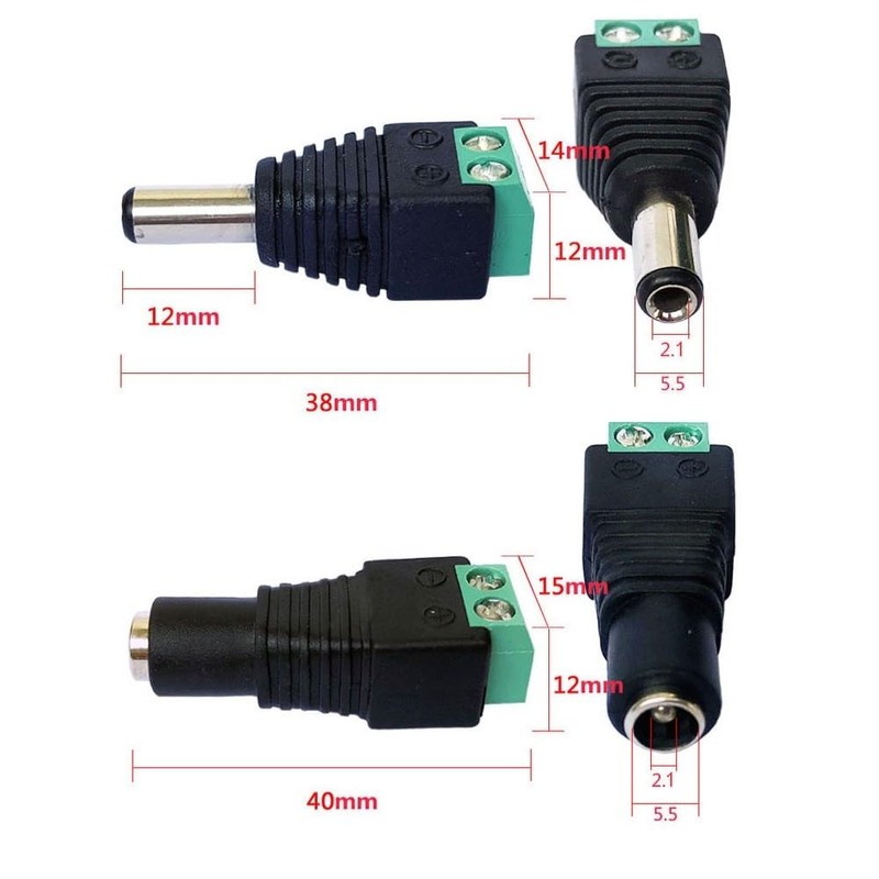 - ✓【20 parçalı komple set】10 x DC 2,1 x 5,5 mm fiş (erkek) + 10 x DC 5,5 x 2,1 mm soket (dişi) – 12 V CCTV kameralar, LED aydınlatma ve elektronik projeler için mükemmel uyumludur