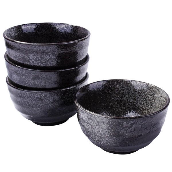 Swlthwen Japanese Porcelain Rice Bowl Set of 4, Black Ceramic Sauce Bowls Sushi Bowls for Soup Cereal Ota Sushi Rice
