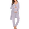SWOMOG Maternity Nursing Robe Set 3 Piece Breastfeeding Pajamas 3 in 1 Labor Delivery Sleevless Tops&Long Pants Pregnancy Pjs Lilac