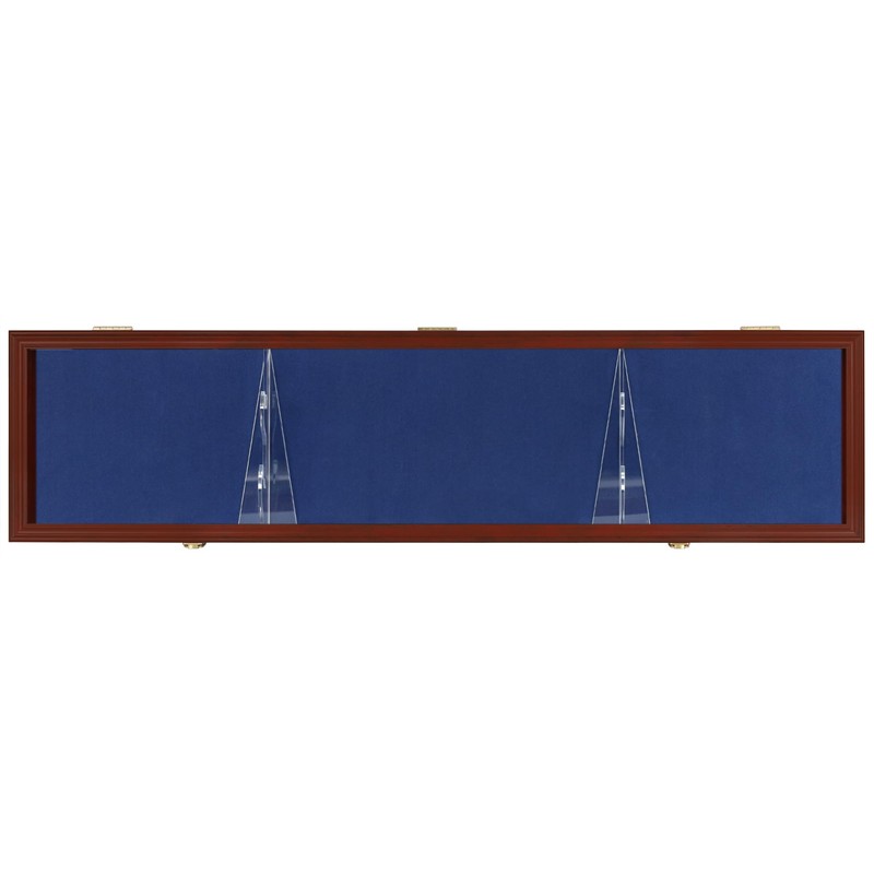 Sword Display Case Cabinet Stand Holder Wall Rack Holds Military Saber or Samurai Sword Lockable UV Protection Door Blue Felt Inside (Mahogany Finish Frame)