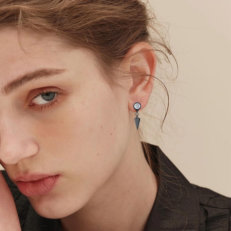 • 【Punk Earrings Design】✙ The perfect combination of the spike awl earrings and the zircon craft, cleverly integrates modern and simple style. suitable for all kinds of parties, daily wear, ideal chain earrings for showing personality.