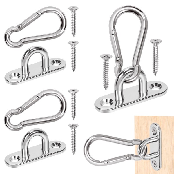 - 💯【What You Get】------- You will get Oval Stainless Steel Ceiling Hooks Kit.Incuding 4 pcs 1.8 inch stainless steel Pad Eye Plate U Hooks, 4 pcs stainless steel snap hook and 8 pcs mounting screws.
