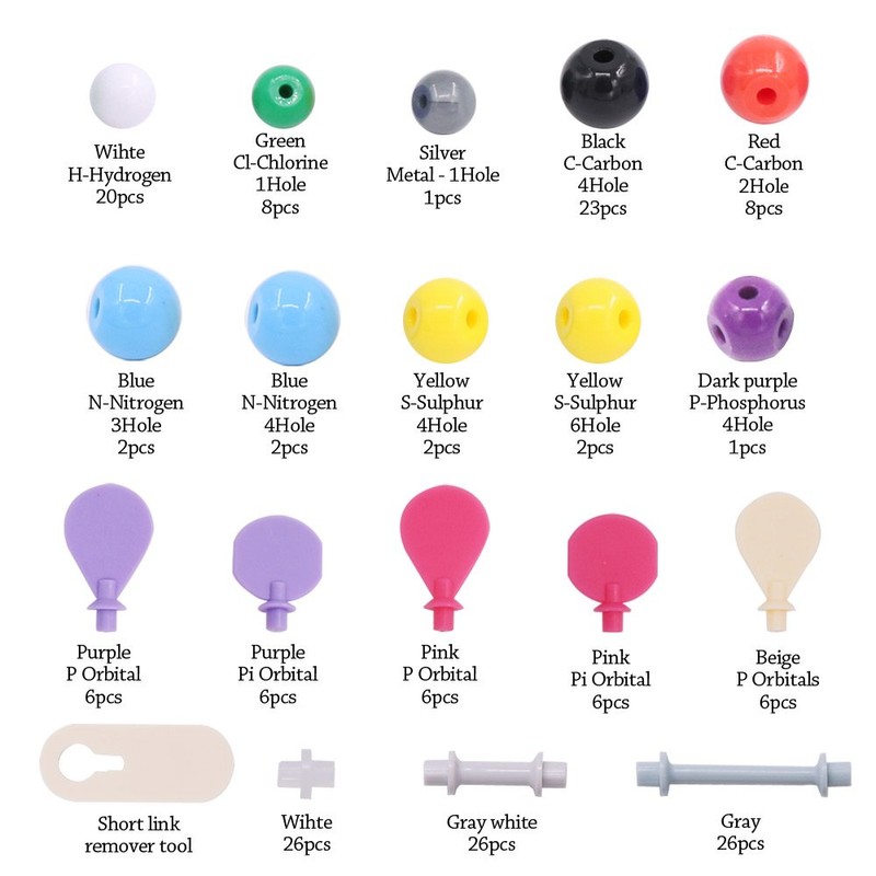 - ★ MOLECULE SCIENCE IN 3D --- We have prepared 178 Pcs molecular model set for you, This model contains C, H, O, N, P, S, CI, and other metals and a variety of single and double bonds, long bonds, long keys. Can be put high school, university chemistry in most of the organic or inorganic molecular structure model for the study of experimental operation.