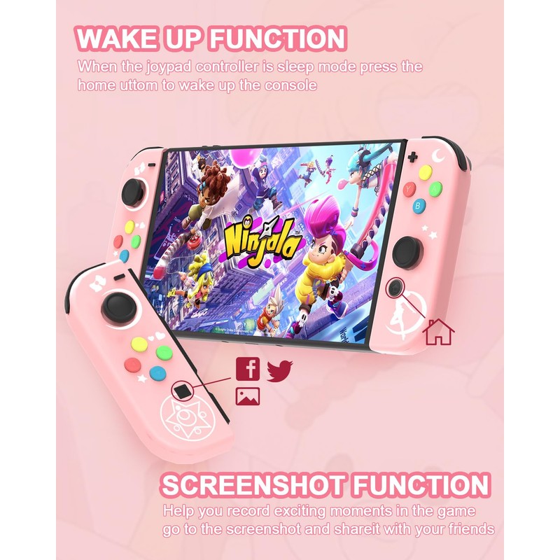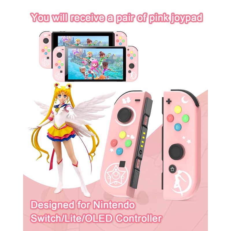 SWTOTK Switch Controllers,Replacement for Joypad Work with Switch/OLED/Lite,Wireless Remote Support Motion Control,Screenshot,Wake-up,Vibration,Sailor Moon (L/R),Pink