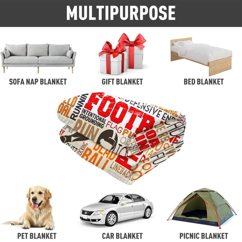 - Multi-purpose:This football throws can be used to keep warm when reading, working, watching TV, napping or cuddling, outdoor activities like travelling, camping.