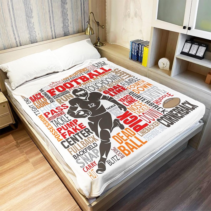 SXCHEN Football Throw Blanket 60" x 80" Plush Blankets for Couch Bed,Fuzzy Throws with Player Silhouette Typography Personalized Print Gifts for Coach Sport Fans Game Day